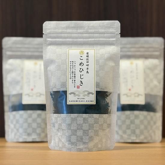 四国と九州を隔てる豊後水道に突き出た“日本一細長い”佐田岬半島の南側、宇和海の沿岸で採れたひじきの「葉」の部分、通称「こめひじき」を鉄釜と薪で炊き、天日干しで仕上げた風味の良い栄養たっぷりの逸品です。